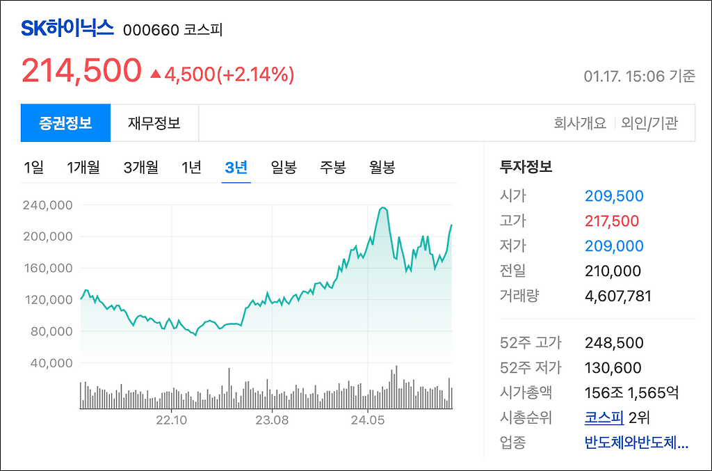 <지난 3년 하이닉스 주가 추이>