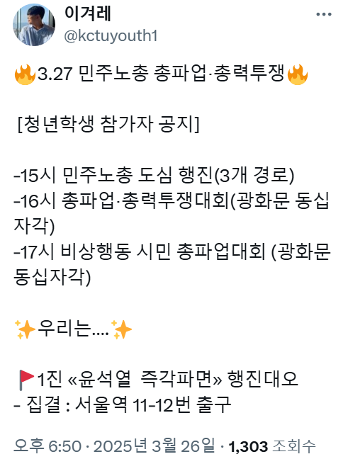🔥3.27 민주노총 총파업‧총력투쟁🔥 청년학생 참가자 공지