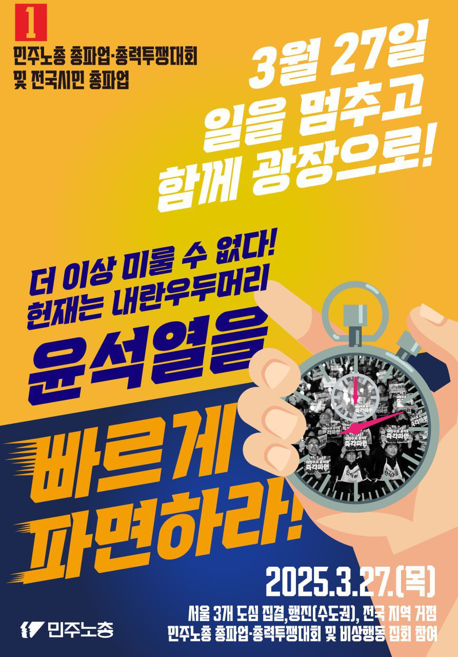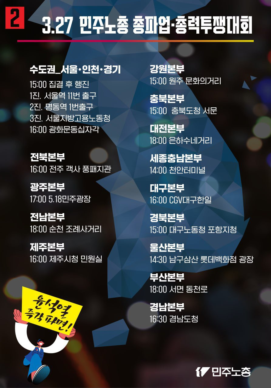 ○ 3.27(목) 15:00 서울역 11번 출구에서 민주노총 대오와 같이 모여서