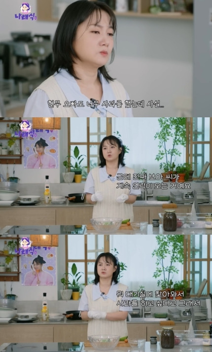 [뉴스엔 이하나 기자] 박나래가 취중 라이브 방송 도중 자신을 언급한 보아가 여러 차례 사과했다고 전했다.