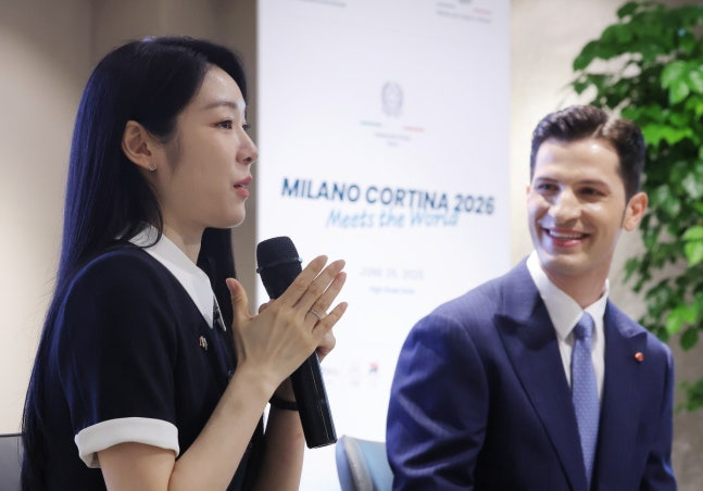 주한이탈리아대사관과 밀라노·코르티나2026 조직위원회가 25일 오후 서울 강남구 가로수길 하이스트리트 이탈리아에서 밀라노·코르티나2026 공식 설명회에는 '2010년 밴쿠버올림픽 금메달리스트'인 '피겨여제' 김연아(35)와 생애 첫 동계패럴림픽에 도전하는 '19세 노르딕 신성' 김윤지(한체대·세계 4위)가 함께했다.