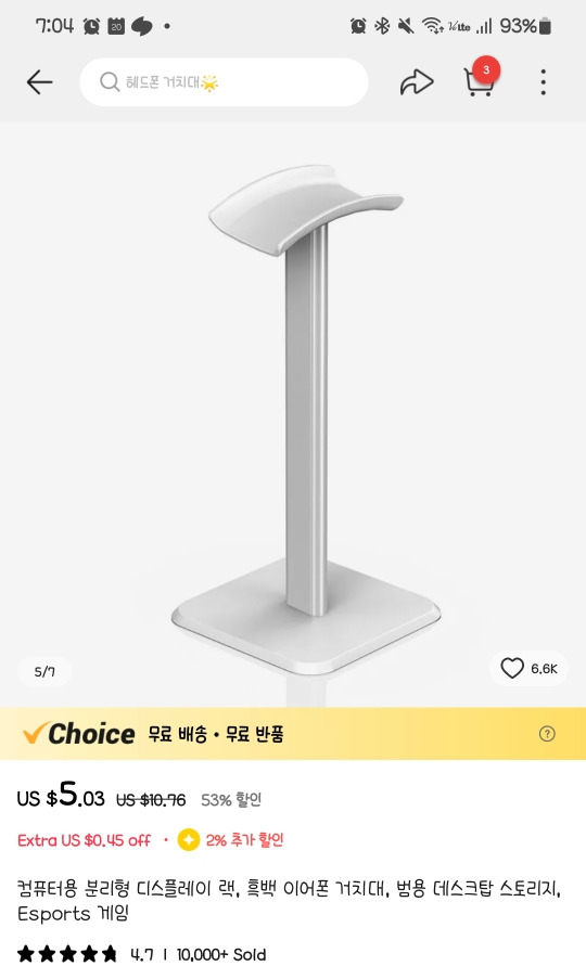 나 살때 3개합쳐서 4.5달러에 결제하는 행사있어서 1.5달러에샀고 지금은....비싸네..아무튼 헤드셋 거치부분이랑 바닥부분은 플라스틱이고기둥은 스테인리스인가..? 아무튼 튼튼함