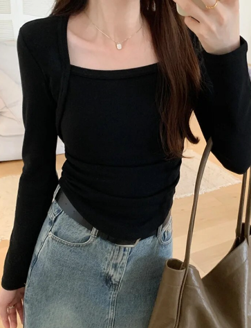 7.02US $ 51% OFF|Slim Fit Irregular T shirt for Women, French Sle, Square Collar, Open Collarbone, Inner Wear| | - AliExpress