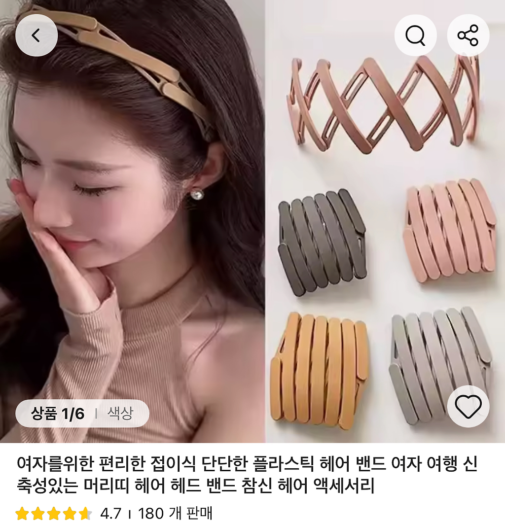 힘은 없어. 머리를 빡!!! 고정하지는 못 하는데 머리띠라는게 은근히 부피 차지하는 아이템이라 집에서 대충 머리띠같은거 쓰고싶을 때 쓰고 있어. 내가 산 건 민무늬인데 나뭇잎무늬 등등 디자인 다른 것도 판매중. 구매가 1.11달러