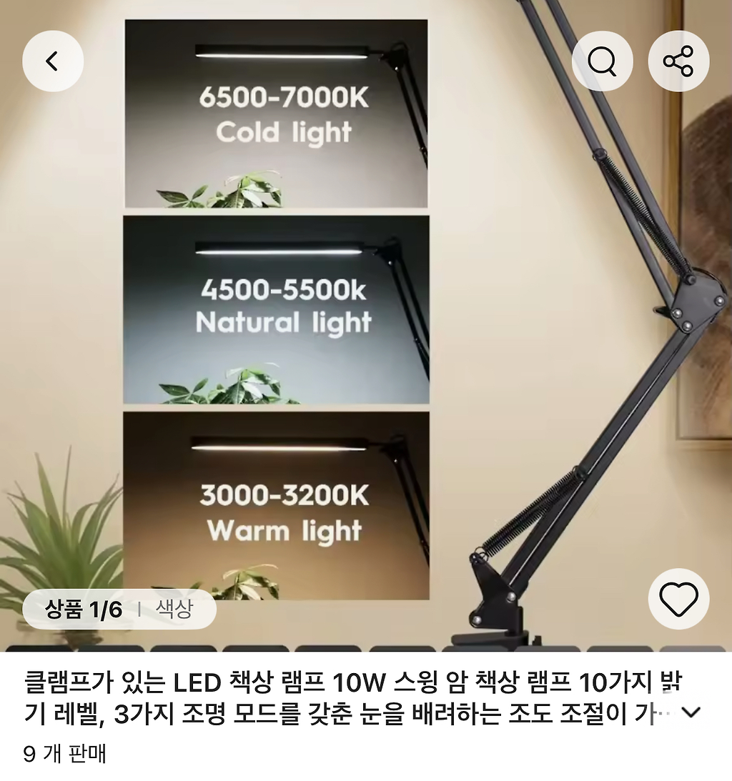 책상이 창문 등지는 위치에 있어서 낮에도 책상에 앉으면 어두운 편인데 불 켜기는 너무 눈부시고... 할 때 쓰려고 샀어. 책상에 클램핑 해서 쓰면 되고 보조배터리나 어댑터 연결해서 쓰면 돼. 색 온도 3종에 밝기조절도 됨. 구매가 4.02달러