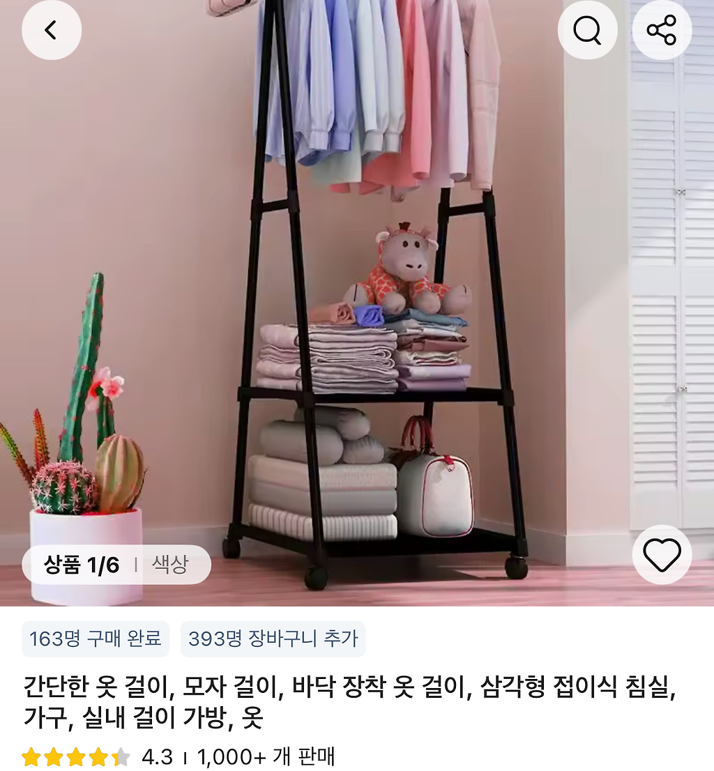 조립하다 이상해서 좀 부숴먹긴했는데 폭 좁고 맨 위에 튀어나온 저거 두개 안 끼니까 스위치랑 붙박이 옷장 사이 남는 공간에 들어가서 만족함. 약하긴한데 흔히 보는 나뭇가지 옷걸이류로 감당 안 되면 추천. 다이소에서 파는 조립식 선반? 5천원짜리랑 비슷한 재질임. 나는 아래칸에 빨래바구니 두고 쓰는 중. 구매가 4.84달러