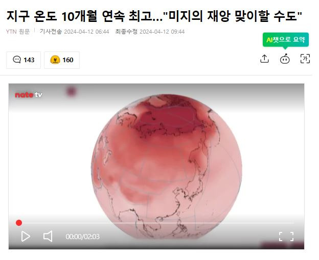 댓글 5지구 온도 10개월 연속 최고…"미지의 재앙 맞이할 수도" : 네이트 뉴스 (nate.com)