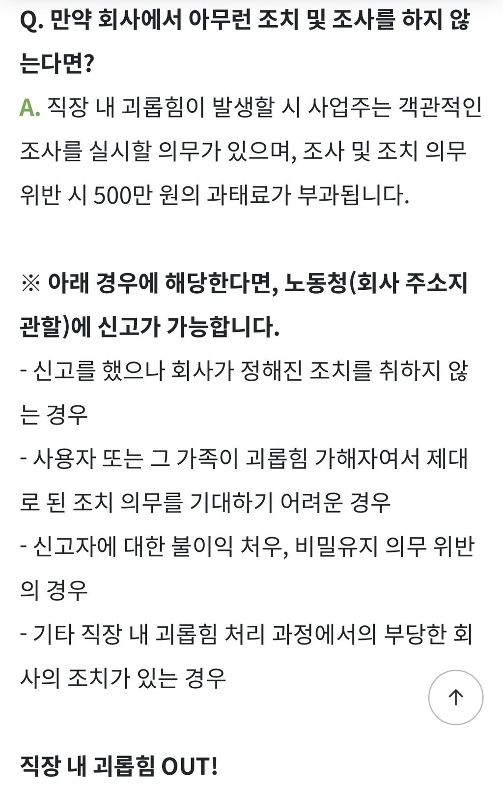 직장내 괴롭힘에 대해 새로운 법 만들어진거 아시는지