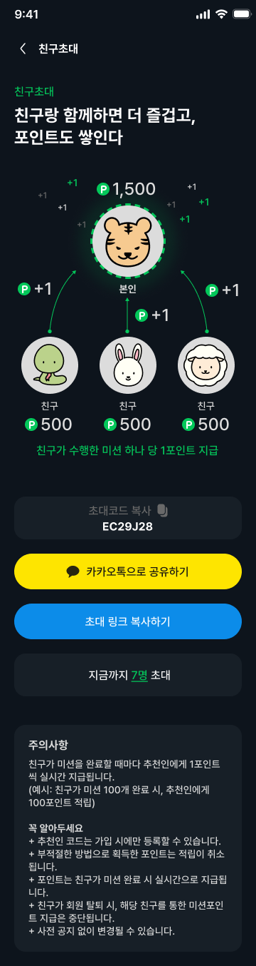 친구 초대하면 서로 500P 주고요,