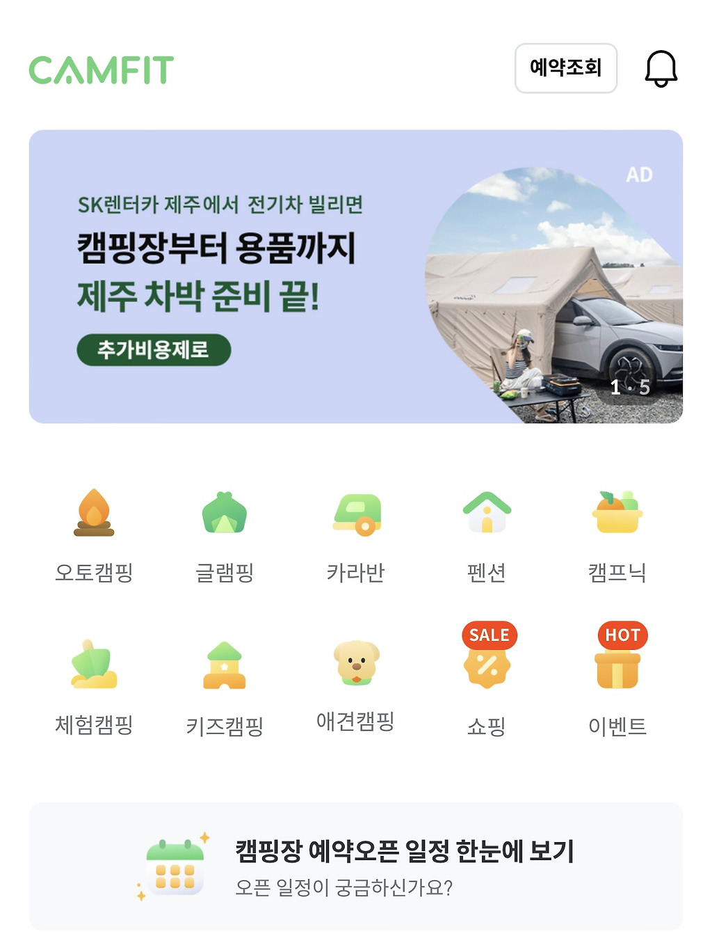 캠핑장 예약 오픈 알림 설정도 가능하고
