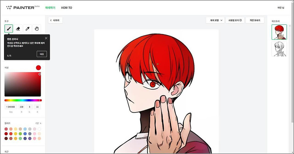 AI 페인터는 네이버에서 개발한 인공지능 채색 사이트입니다. 네이버 웹툰에서 딥러닝 방식으로 학습된 채색 데이터를 사용하여 업로드한 그림을 네이버 웹툰의 색채로 칠해줍니다. 클릭하는 것 만으로 높은 퀄리티로 색칠할 수 있고, 누구나 무료로 사용할 수 있기 때문에 본인이 그린 그림을 간단하개 채색하고 싶은 경우 유용하게 사용할 수 있어보입니다.