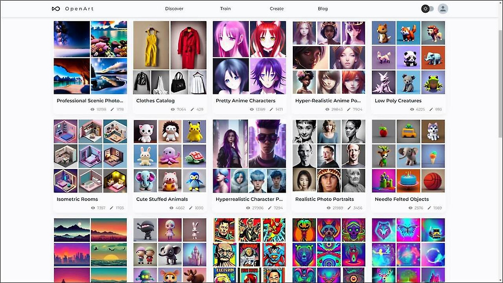 오픈아트는 천만 개 이상의 프롬프트를 검색하거나 DALL-E 2 및 stable diffusion을 통해 무료 AI 그림을 생성할 수 있는 사이트입니다. 이 사이트의 장점은 카테고리 별로 정리가 잘되어있다는 점으로 원하는 카테고리를 선택해 원하는 그림을 쉽고, 빠르게 생성할 수 있습니다.