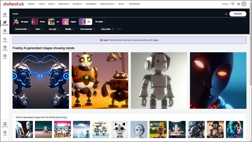 다른 AI 그림 사이트들은 그림을 무단으로 학습시켰다는 윤리적인 문제가 존재하지만 셔터스톡이 제작한 이 플랫폼은 자체적으로 라이센스를 받은 데이터만 사용해서 학습시킨 것이 특징입니다.
