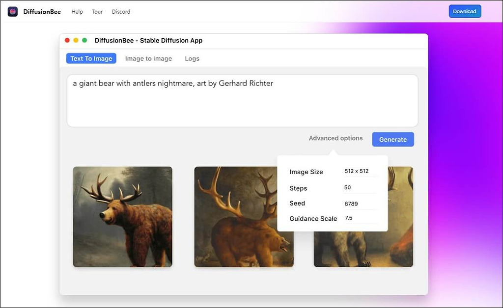 diffusionbee는 맥OS에서 사용할 수 있는 Stable Diffusion를 기반으로 하는 인공지능 그림 생성 프로그램입니다. 공식 사이트에서 다운로드 받아 사용할 수 있고, 텍스트로 그림 생성, 이미지로 그림 생성, 인페이트 기능이나 아웃페인트 기능 등 대부분의 기능을 내장하고 있어 맥북을 사용하시는 분들에게 꼭 추천드리고 싶습니다.