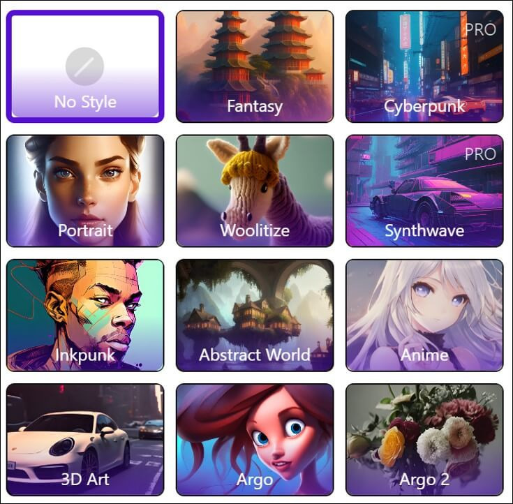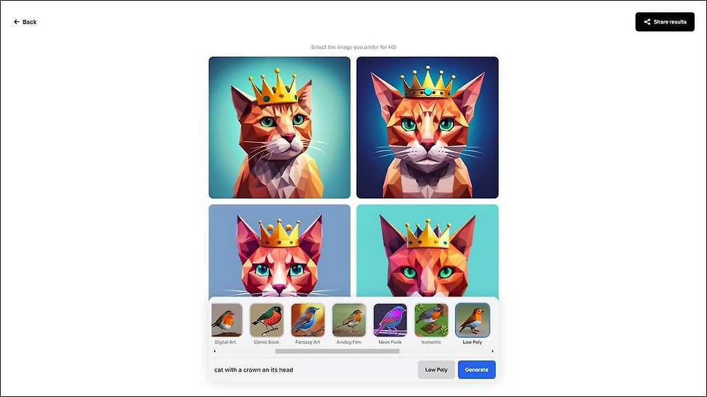 다양한 테마의 퀄리티 높은 이미지를 간단하게 생성할 수 있다는 점이 좋은 사이트로 스크롤을 내려 Input Image에 이미지를 업로드해 원본이 되는 그림과 비슷한 느낌으로 생성하는 것도 가능합니다. 또한, 생성 횟수에 제한이 없고 늦어도 30초 이내에는 생성되기에 편리합니다.