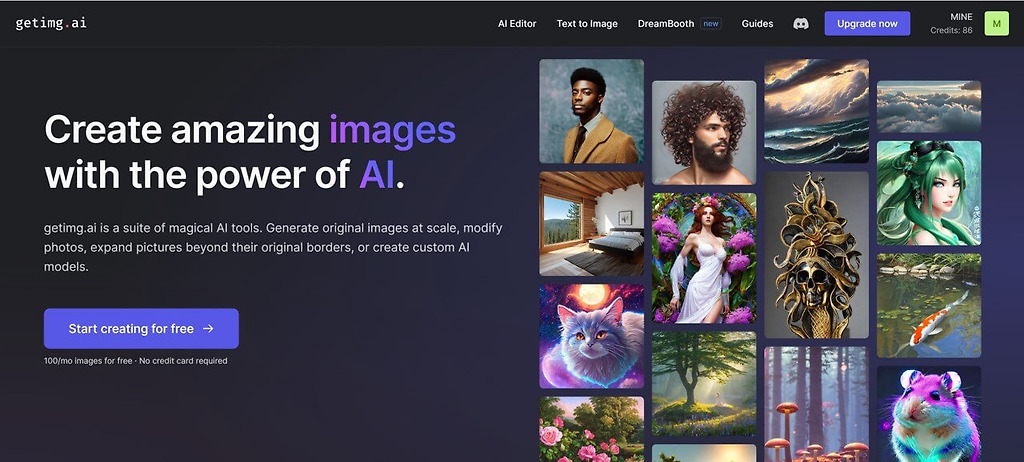 Getimg AI는 스테이블 디퓨전, 애니메이션 디퓨전, 오픈저니 등 여러가지 모델을 지원하고, 프롬프트와 거부 프롬프트를 입력해 이미지를 생성할 수 있습니다. 무료로 총 100장의 이미지를 생성할 수 있고, 그림 크기, 생성 갯수, 샘플러, 스탭 등 설정을 커스텀할 수 있어 보다 정확한 그림을 생성할 수 있다는 장점이 있습니다.