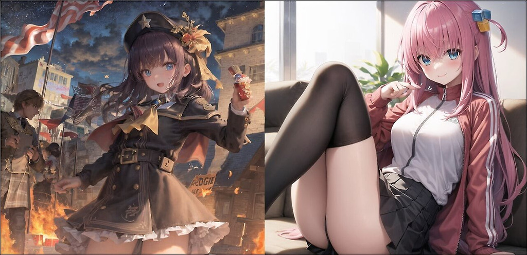 WebUI의 확장 기능 중 하나인 Lora는 특정한 캐릭터를 생성하고 싶은 분들에게 가장 적합한 방법입니다다. Lora란? 특정 캐릭터 및 그림체를 학습시켜 원하는 캐릭터를 보다 쉽게 생성하는 기능으로 오빠는 끝에 등장하는 마히루란 캐릭터를 학습시킨 후 그림을 생성하면 등장하는 캐릭터가 마히루로 고정됩니다.