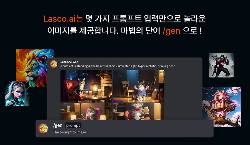 라스코 AI는 미드저니처럼 디스코드에서 사용할 수 있는 AI 그림 생성 사이트입니다. 디스코드 방에 입장한 후 /gen 프롬프트를 입력해 이미지를 간단하게 생성할 수 있다는 것이 특징으로 베타기간동안 매일 100크레딧을 받을 수 있어 무료로 사용하고 싶은 분들에게 추천합니다. 갤러리 기능도 있어 다른 사람이 만든 이미지를 확인하고, 비슷한 이미지를 쉽게 따라 만들 수 있다는 점도 장점입니다.