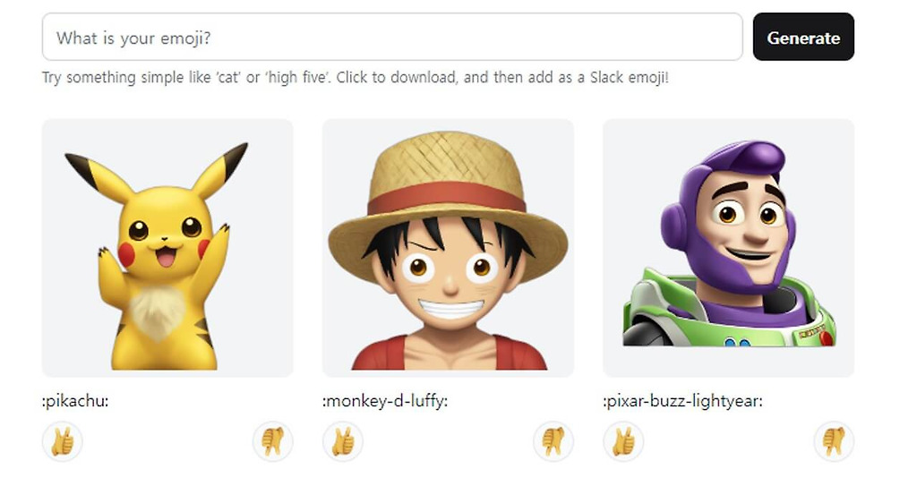 이모지는 😀와 같은 사람 형태의 문자를 뜻하는 絵文字(에모지)에서 처음 시작했습니다. AI 이모지 사이트에서는 애플에서 개발한 미모티콘에 3D 이모지 캐릭터와 같은 느낌으로 AI 그림을 생성해주는 기능을 제공하며 여러 애니메이션 캐릭터는 물론 현실의 영화 배우, 음식, 물건 등 다양한 이모지 제작이 가능해 실제 디자인 업무에도 사용할 수 있어 추천합니다.