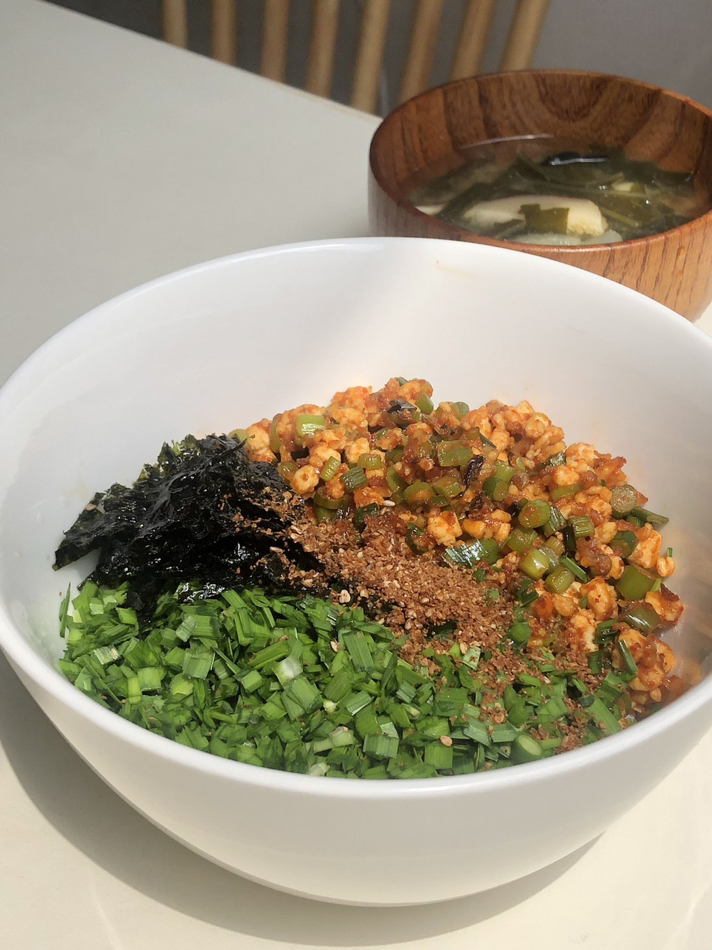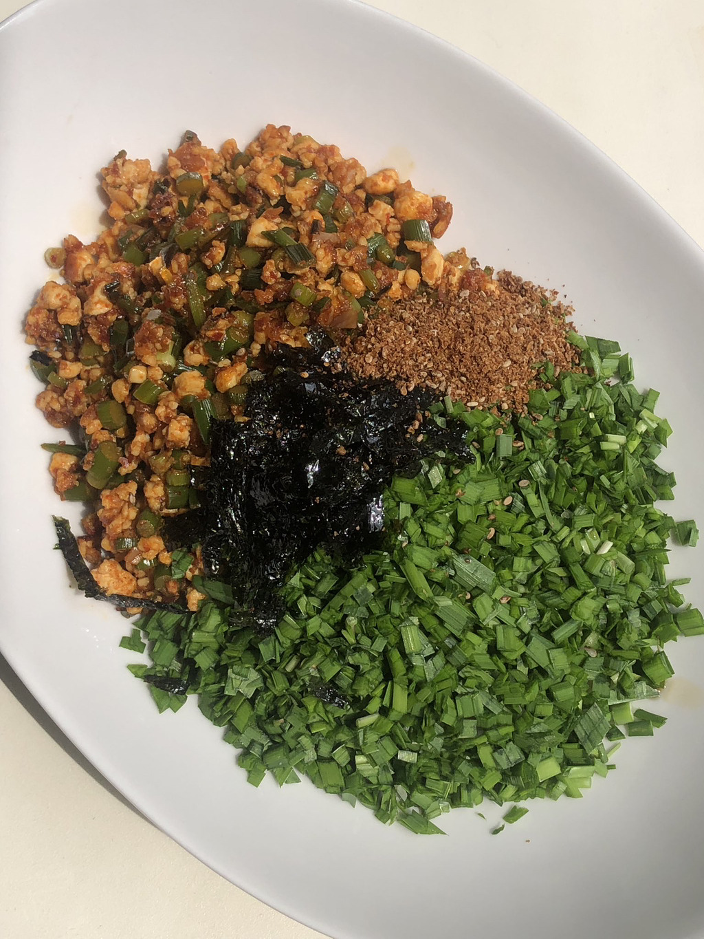 - 송송 썬 부추, 김가루, 들기름 뿌려 비벼 먹기