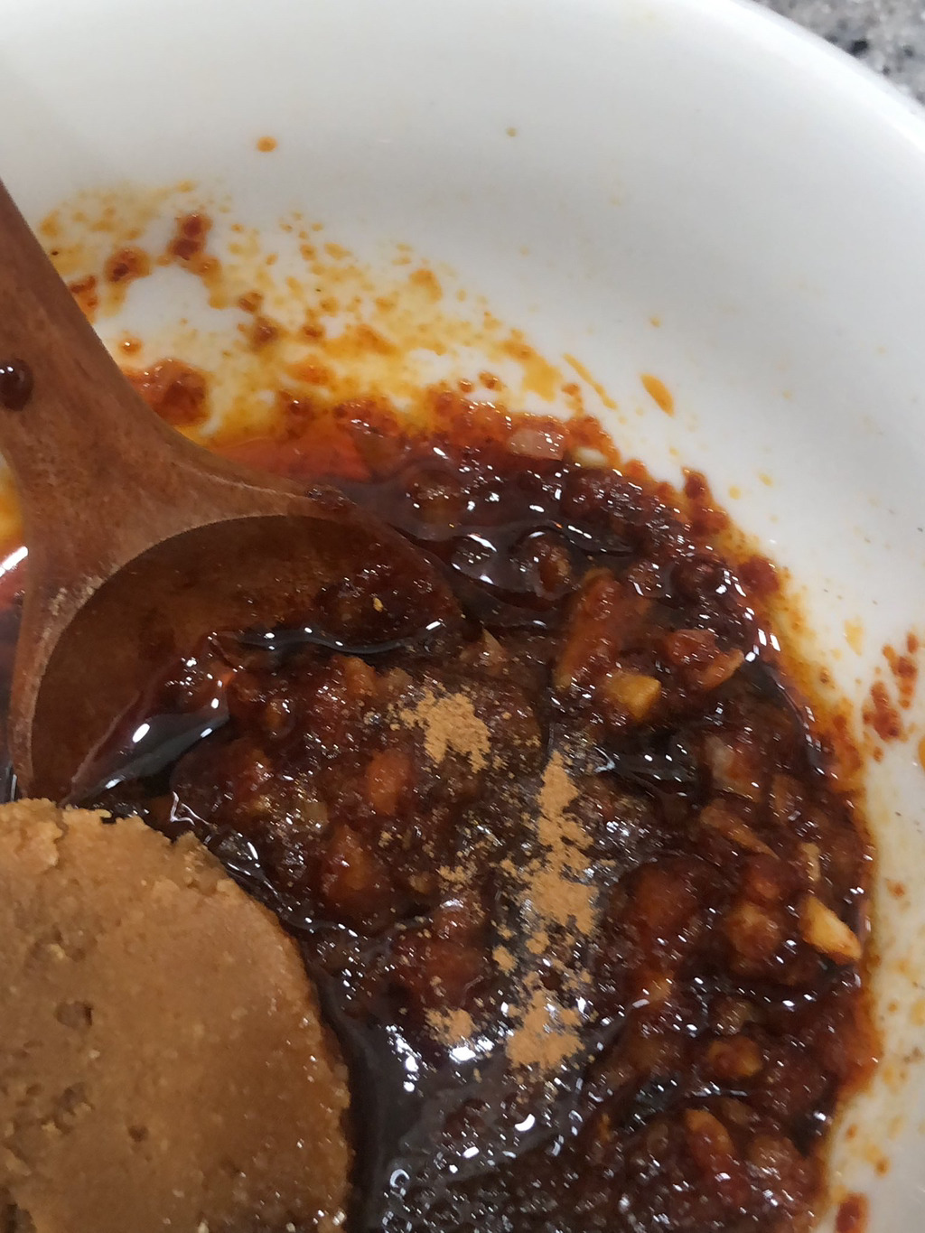 (양념장: 간장1, 미소1/2, 설탕1/2, 시나몬 가루 톡! 한번만)