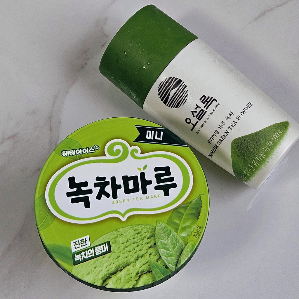 녹차마루 + 녹차가루 = 달콤쌉쌀 농도 진한 녹차 아이스크림🌱이 된다는 걸 아십니까… 뿌리고 마구 섞어주면 단맛은 잡아주고 녹차맛은 진해져서 JJJJJMT🥺녹차덕후 다 모여…. 녹차녹차