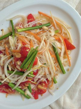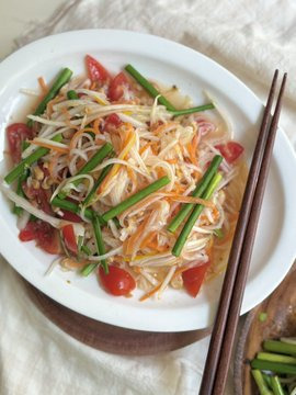 - 참외 1개 속 파내 채칼로 썰고, 고명으로 올릴 땅콩 잘게 썰기. 페페론치노랑 마늘 다짐