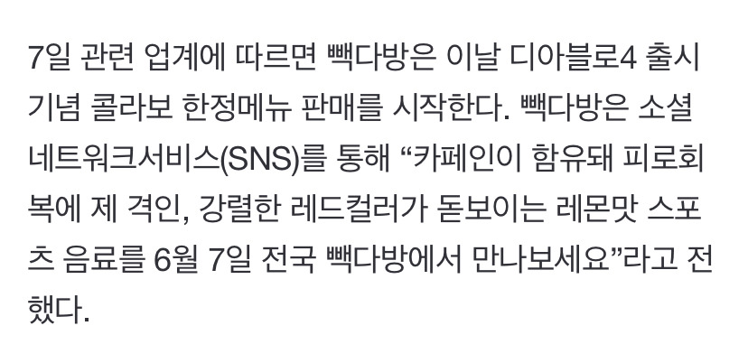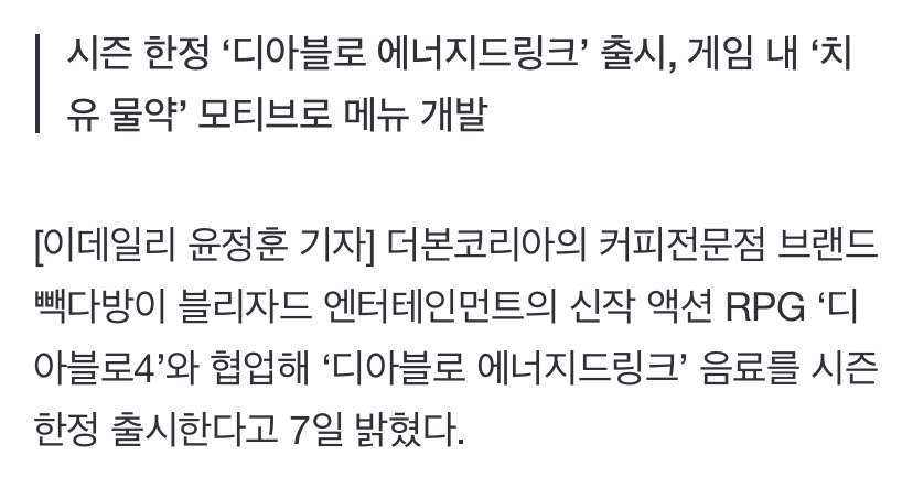 빽다방, 디아블로4 출시 기념…‘디아블로 에너지드링크’ 출시