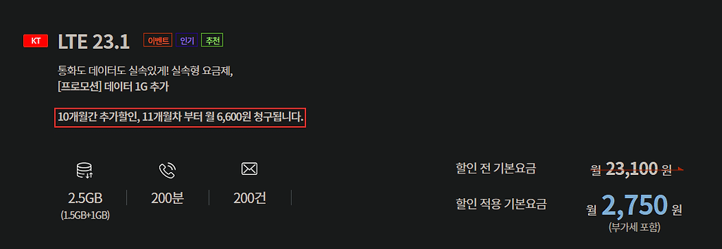 될 수 있으면 평생 요금제를 찾아보는걸 추천