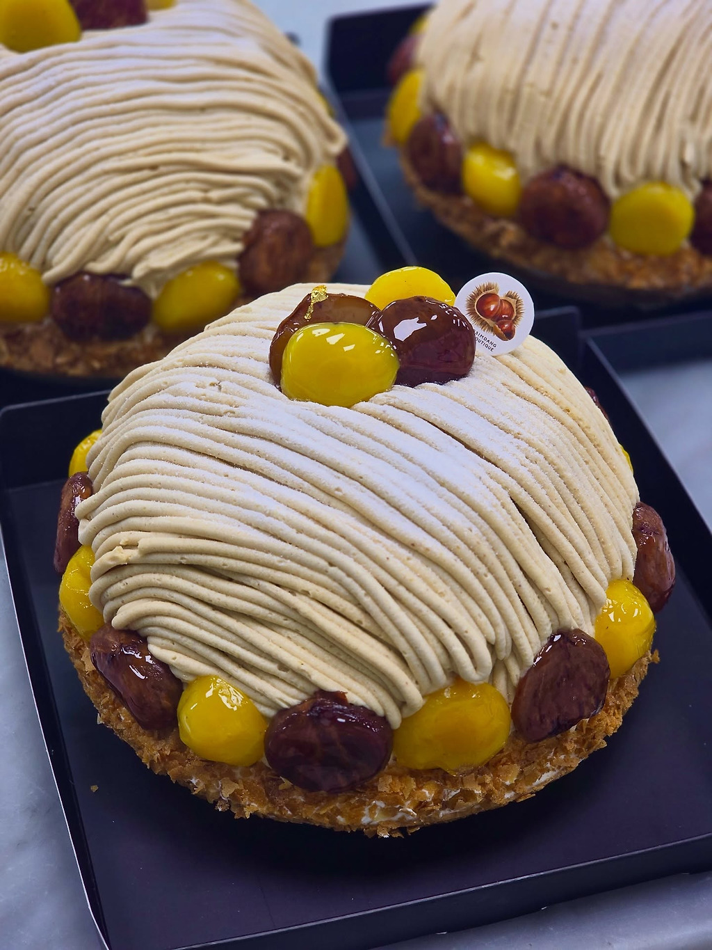 바삭한 타르트지에 크림치즈 무스와 달콤한 밤들이 뭉쳐 고소하면서도 부드러운 맛을 느낄 수 있어요!