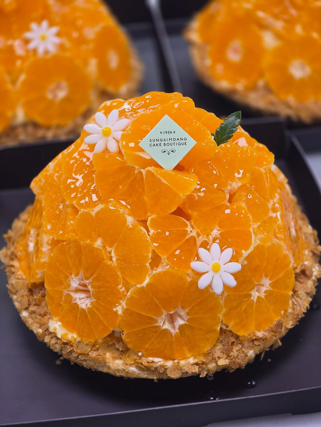 크림치즈 무스, 녹진한 커스터드가 만나 조화를 이루고 안과 겉에도 제철 맞은 귤이 듬뿍 들어가 있어 상큼 달콤한 맛을 느낄 수 있어요!