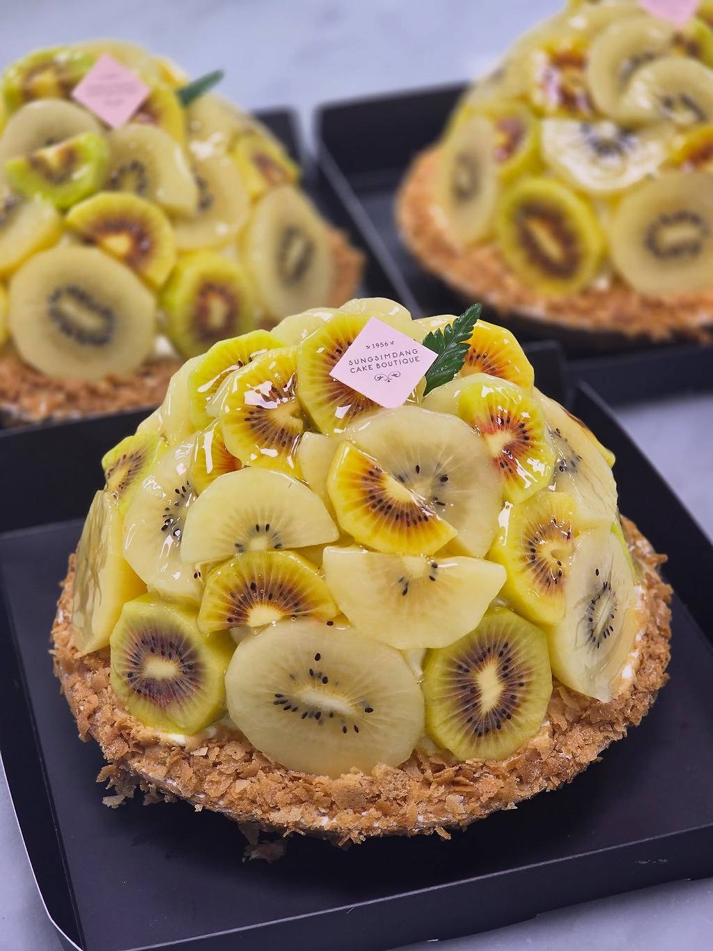 향도 좋고 맛도 좋은 골드키위와 레드키위를 가득 넣은 타르트! 커스터드와 요거트,우유크림을 섞어 만든 정말 맛있는 크림도 같이 곁들인 화제의 타르트!