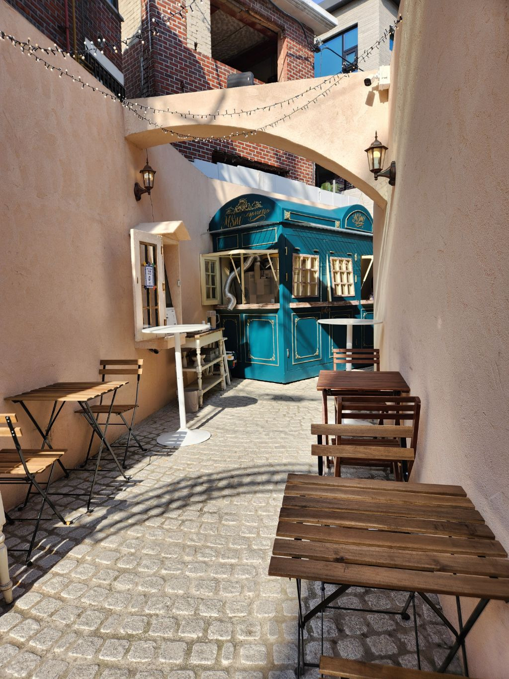 유럽풍 인테리어와 정통 포르투갈 에그타르트, 커피를 맛볼 수 있는 카페몬스터스토리지실내와 골목길 모두 드라마 세트장처럼 너무 예쁘고 에그타르트와 커피가 맛있음에그타르트 3300원 에스프레소 2300원으로 가성비도 좋음.
