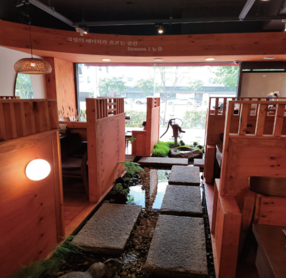 여기 인테리어가 특이한게 바닥에 물이 흐르게 한 인테리어 구조야!! 곳곳에 물이 흐르고 있음