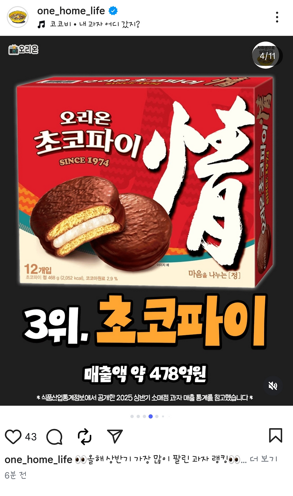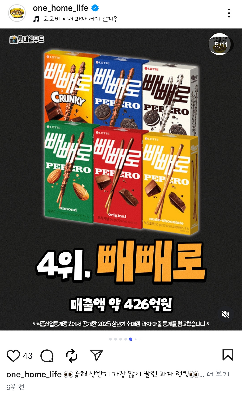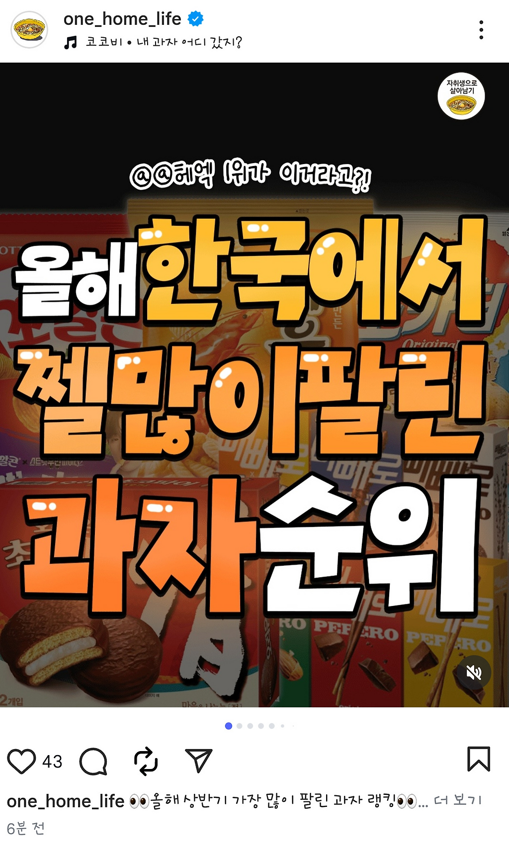 올해 젤 많이 팔린 과자 순위