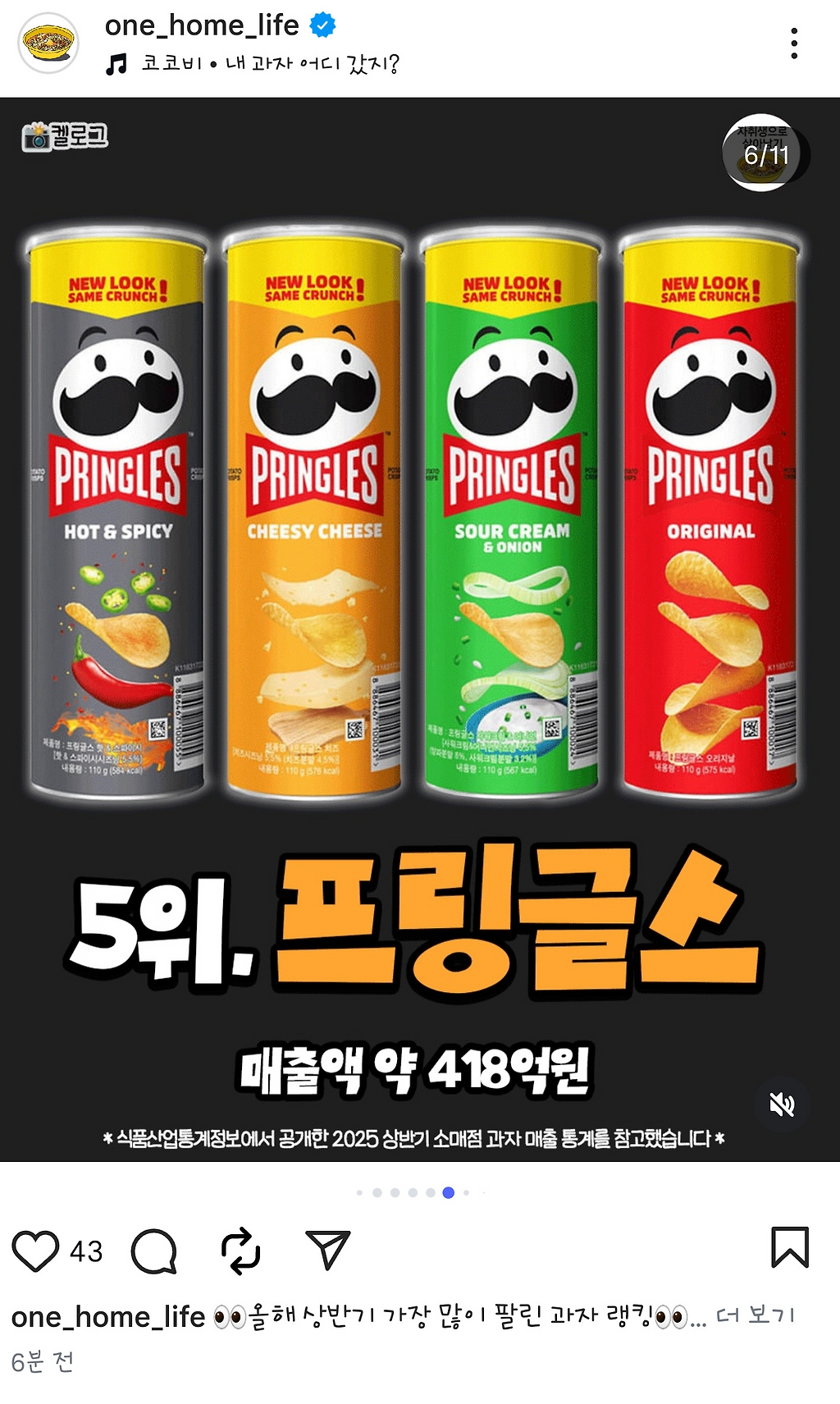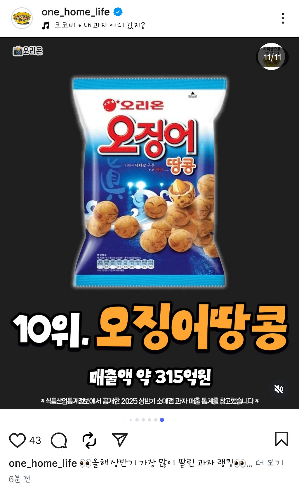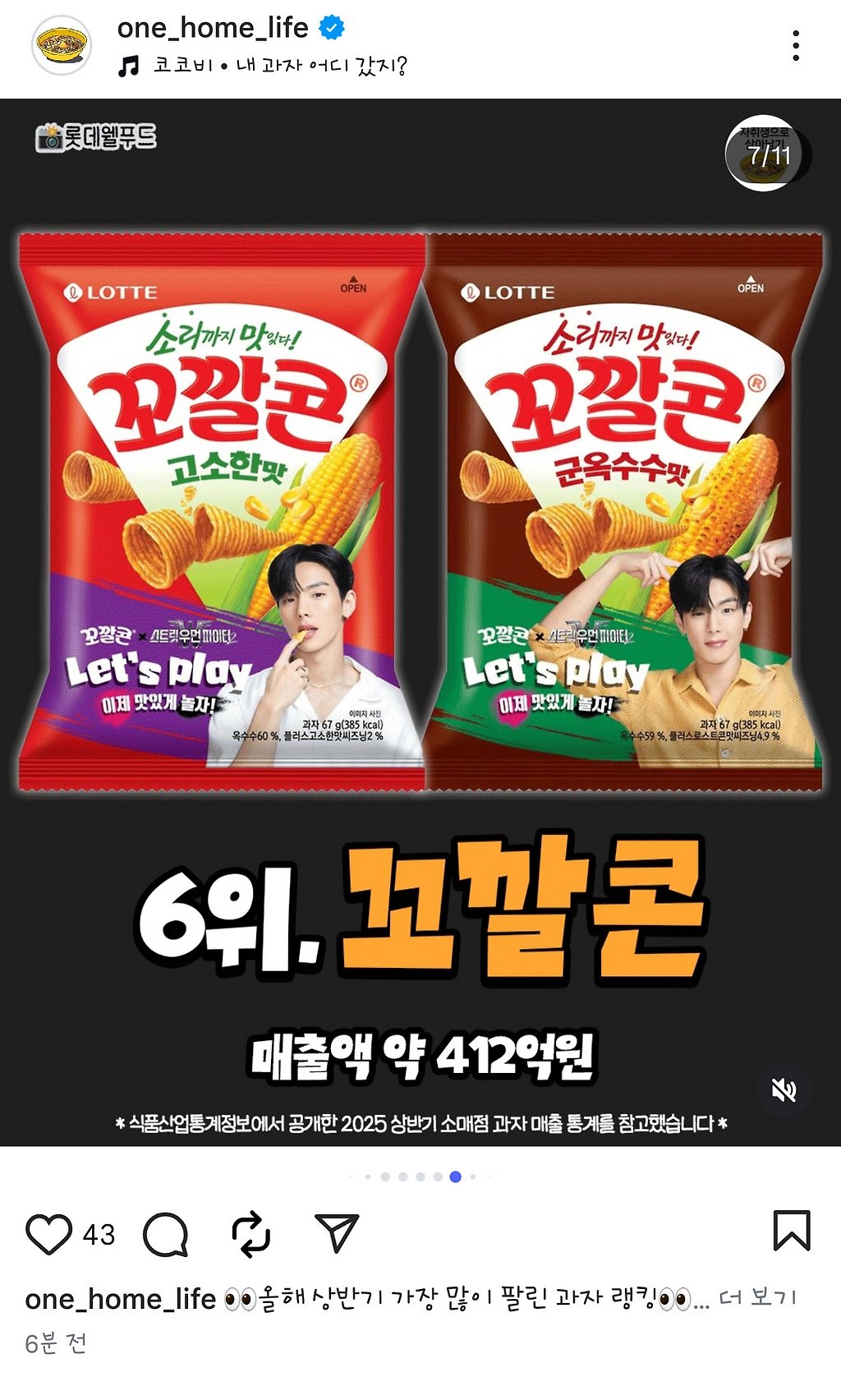 올해 젤 많이 팔린 과자 순위