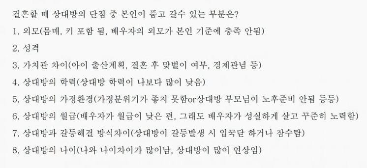 사소한거라도 깊이 생각해봐야지 대충 괜찮다 하고 결혼하면 안되는거같음..