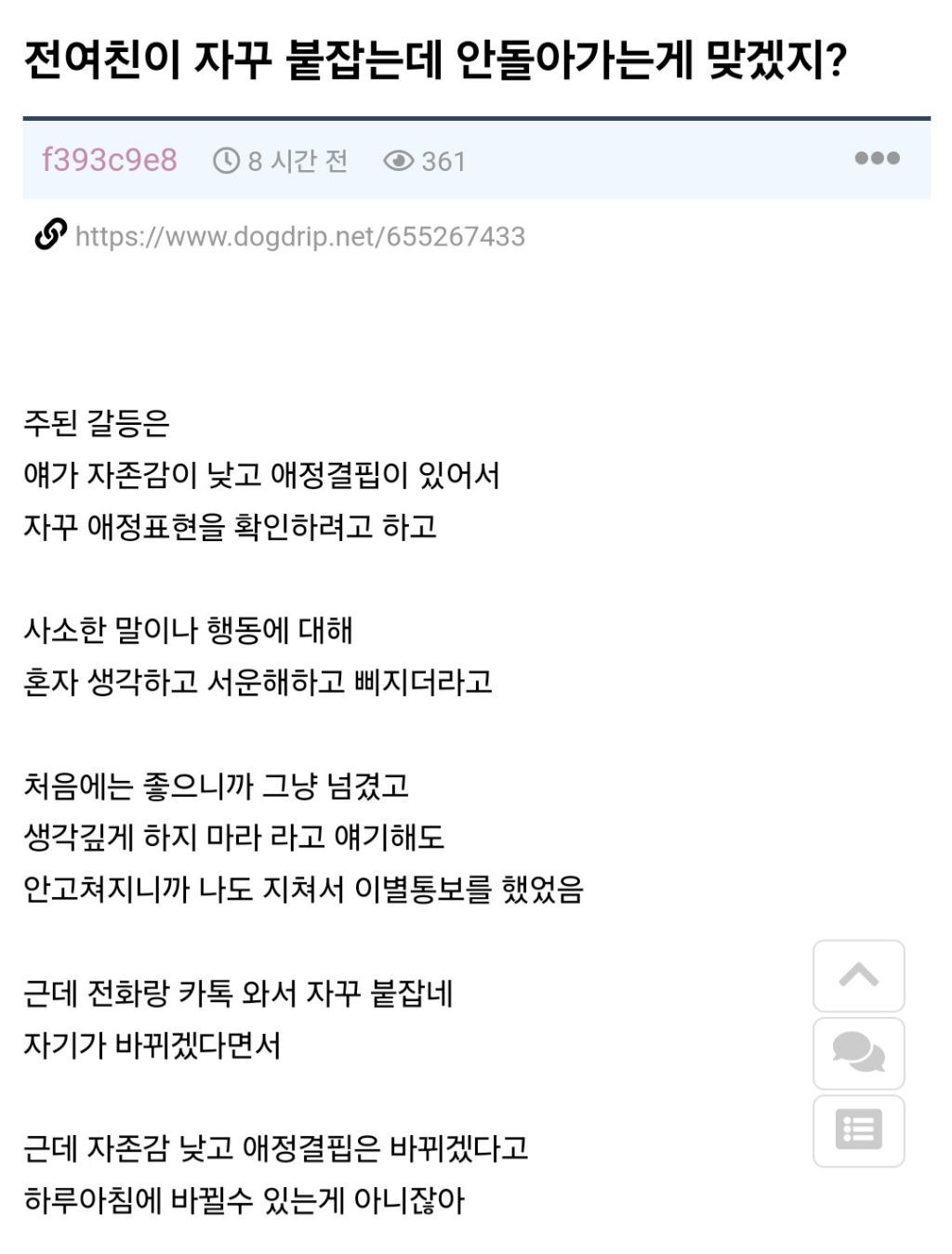 전여친이 자꾸 붙잡는데 안 돌아가는게 맞겠지?