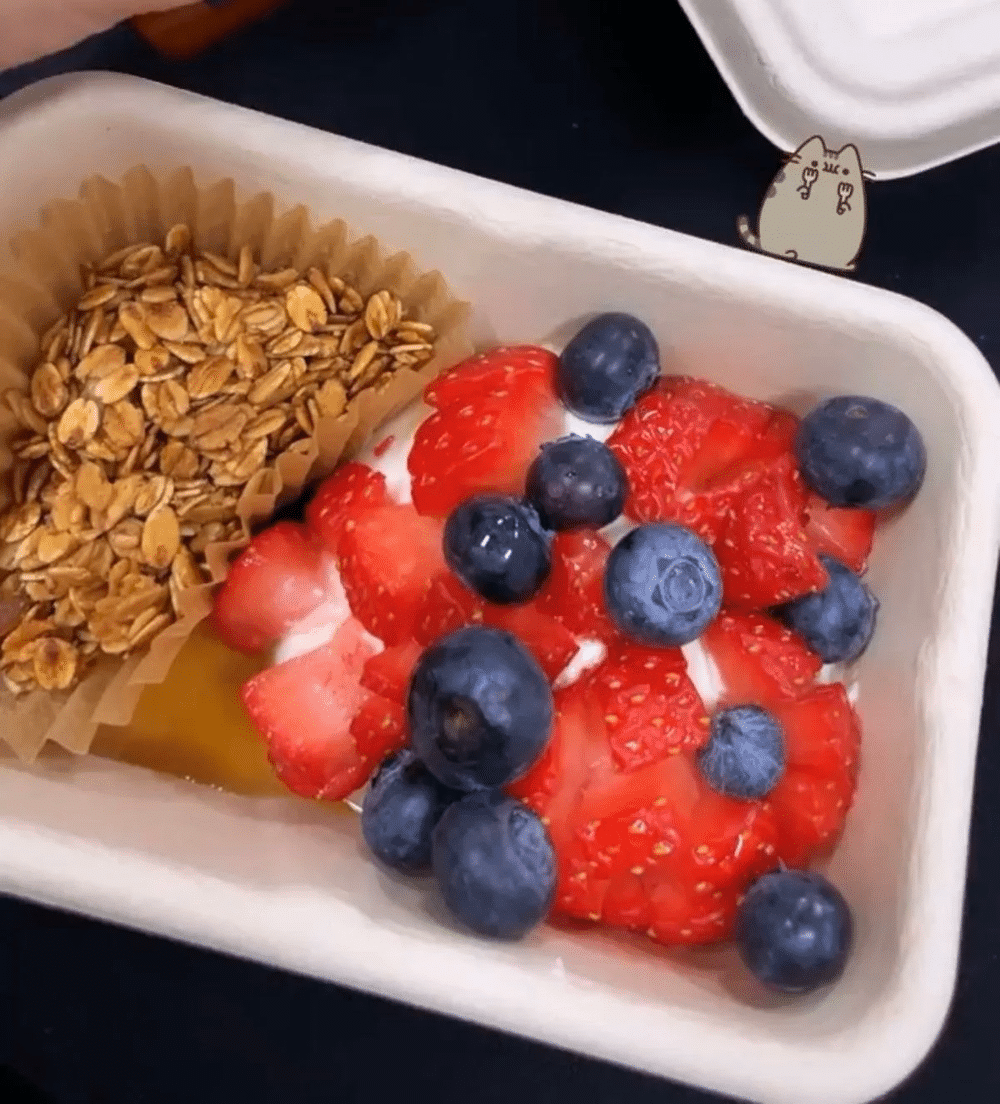 : 그릭요거트+ 꿀+ 딸기+ 그래놀라