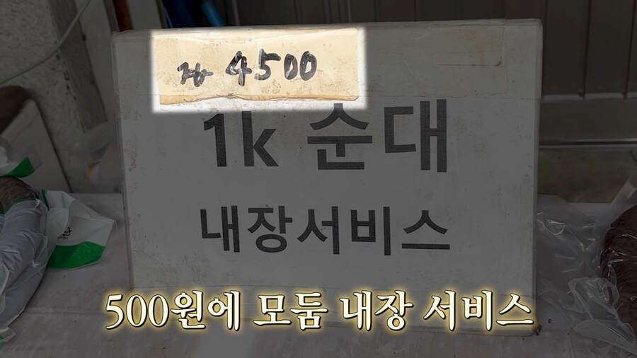 순대(1.5kg) 6천원 + 머릿고기 2천원 + 간&허파 1천원 + 오소리감투 1천원 = 만원