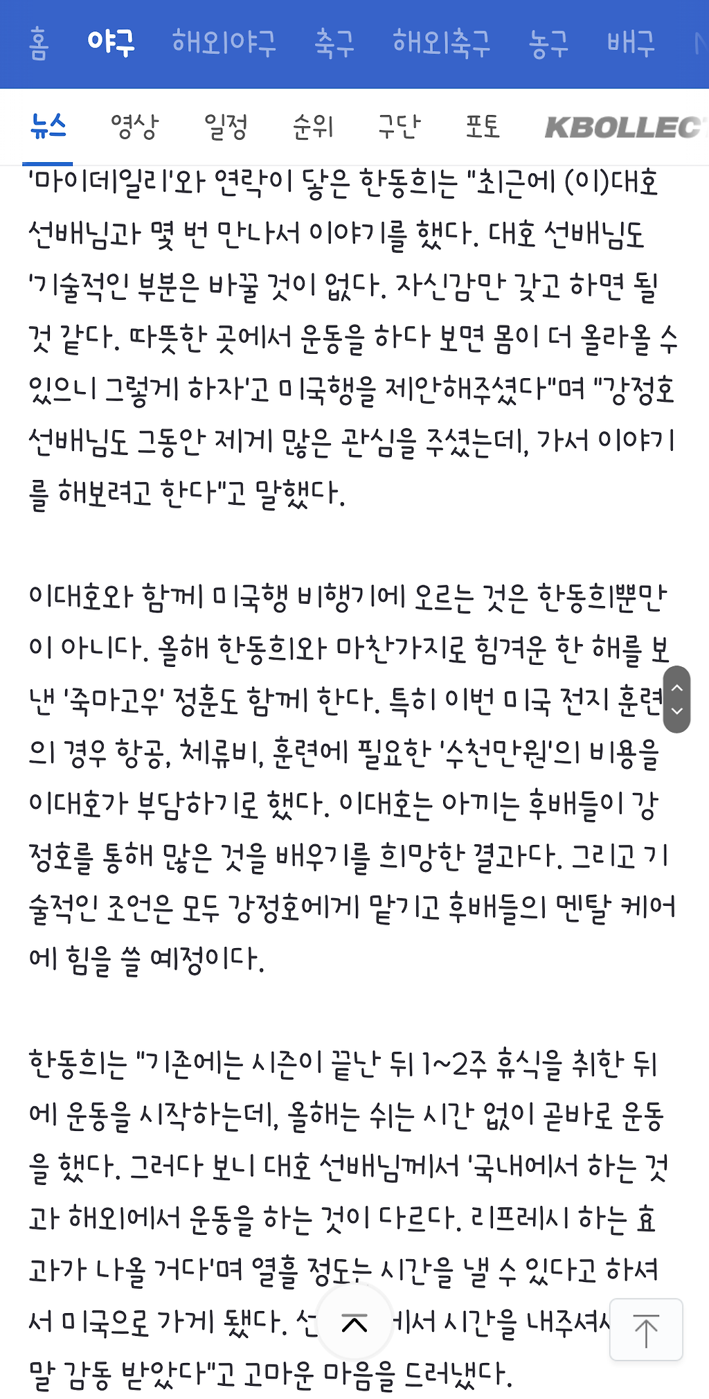 헐 대호랑 미국가는거 정훈도 같이 간대