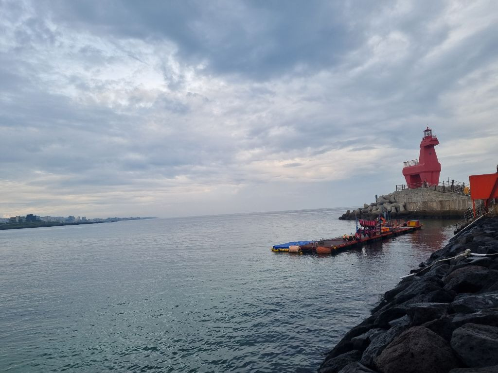 하늘은 아직 어둡지만 새벽에 내렸던 빗방울이 서서히 그쳐갔던 주말의 이호바다