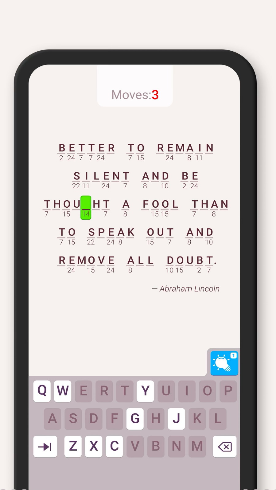 3번의 기회안에 명언의 철자들을 맞추면 됨!