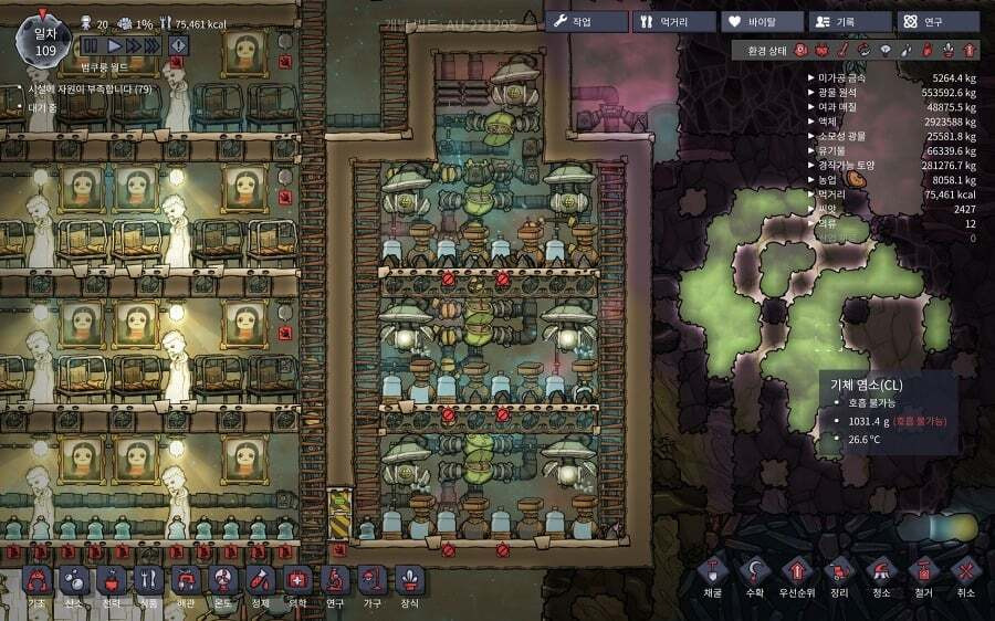 산소미포함,미지의 소행성에 지하 기지를 파고 물, 온도, 음식, 산소, 질병을 관리해 살아남는 생존 게임으로 굶지마 개발사의 게임,사실상 후속작인 겜이며