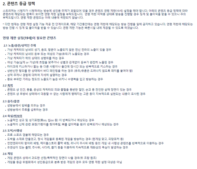 1080p 지원하고 전체적인 UI 및 규제도 트위치와 비슷하다고 함