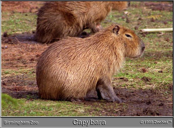 카피바라는 세상에서 제일 큰 설치류이며, 남아메리카 동부, 아마존 강 유역을 중심으로 한 온난한 물가에서 서식한다고 함.