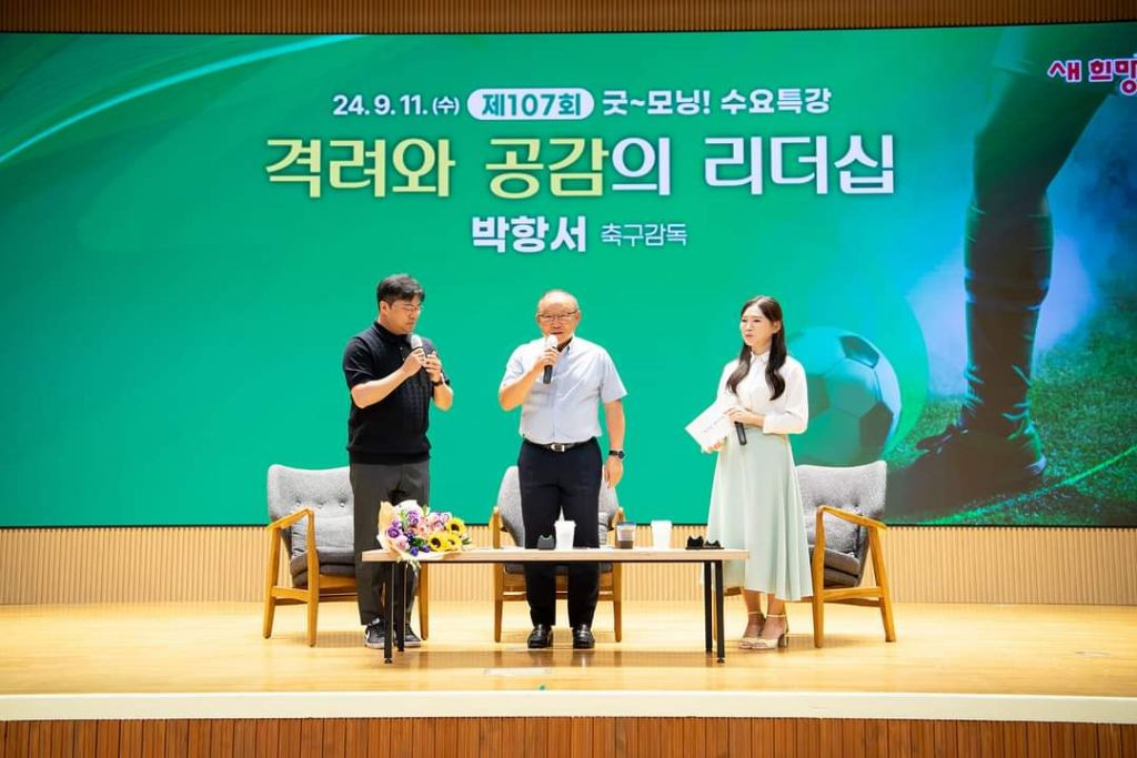 댓글 0굿모닝 수요 특강에 특별한 손님이 찾아오셨습니다. 베트남 축구 역사에 한 획을 그으시고 최근 세계브랜드재단에서 주관하는 브랜드 로레이 어워드에서 대한민국 감독 최초로 리더십상을 수상하신 박항서 감독님과 토크 콘서트를 진행하였습니다.
