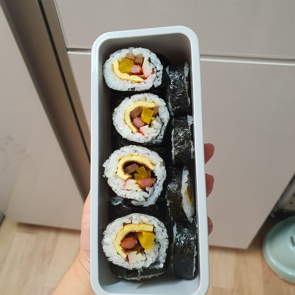 비가 자꾸 오다말다 해가지구 애호박전..! 그리고 제일 만만한 김밥 남은 김밥 내일 계란물로 또 김밥전..과일 복숭아 있는데 짐이 많아지니까 패쓰나도 도시락 싸다니면서 실력을 늘려야겠어!