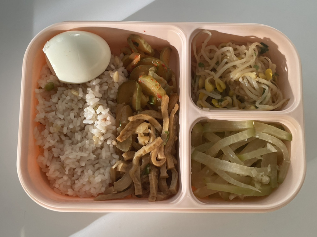 잡곡밥 - 오이지 - 어묵볶음 - 콩나물무침 - 무나물