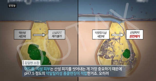 세줄요약:얼굴에 개기름 끼는거= 피지= 산성>약산성 클렌저로 안씻김>>산성피지 클렌징 되는 세안제(약알칼리성) 써라